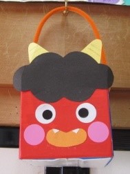また、お母さんと一緒に紙で作った豆を「おにはそと~」と投げて節分の雰囲気をあじわいました。